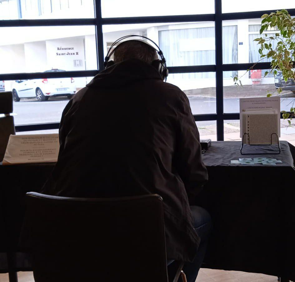 Le 30 novembre 2022. Mercredi. 15h de l’après-midi. Médiathèque d’Hendaye. Lieu tranquile et chaleureux. Il ne pleut pas dehors. Peu de monde mais ceux qui passent sont contents de participer.