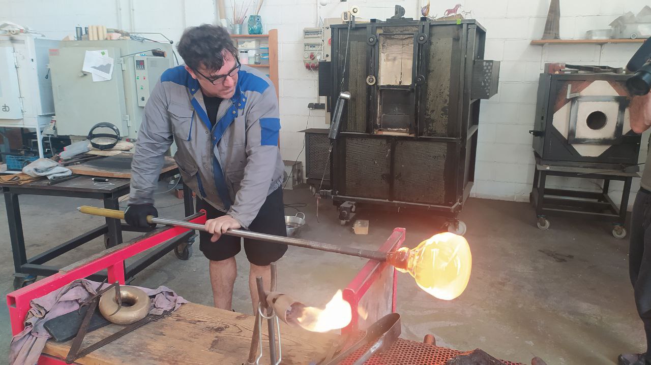 Irungo Argia Badago tailerrean sortu digu Igorrek zementuaren barnean egongo den beirazko kapsula.