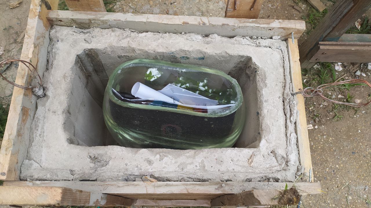 La cápsula de vidrio interior que está dentro de la de cemento fue realizada por Igor del taller Argia Badago de Irun.